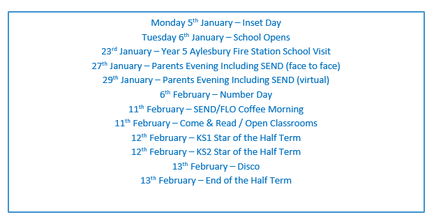 Letters can found below dates for this half term.